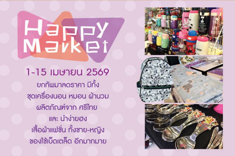 สาขาเดอะไนน์ ช้อปสนุกกับงาน "Happy Market" พบกับสินค้าหลากหลายมากมาย ตั้งแต่วันที่ 1 - 15 เม.ย. 69