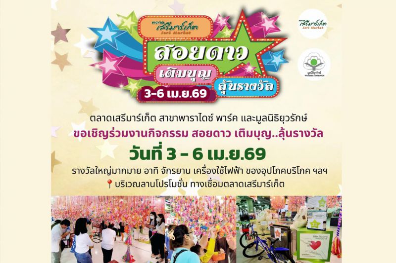 สาขาพาราไดซ์ มาแล้วค่ะ "สอยดาว เติมบุญ ลุ้นรางวัล" ตั้งแต่วันที่ 3 - 6 เม.ย. 69 มาร่วมลุ้นโชค ทำบุญกันนะคะ