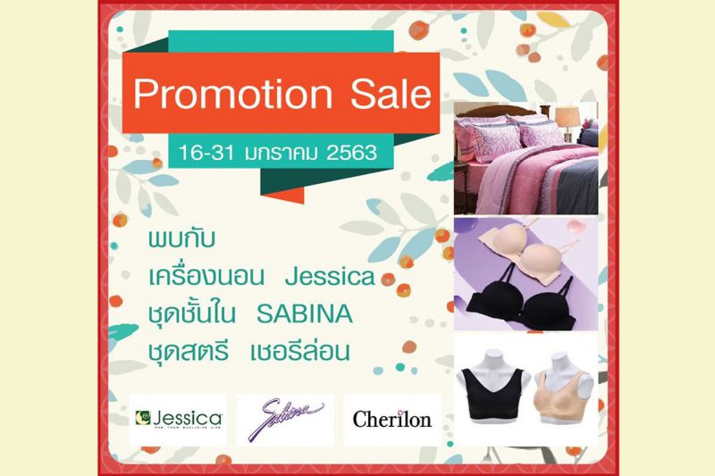 สาขาพาราไดซ์ ในวันที่ 16-31 ม.ค. 63 นี้ พบกับงาน "Promotion Sale" มีสินค้ามาให้เลือกมากมาย ได้แก่ ชุดเครื่องนอนจาก Jessica ชุดชั้นในจาก Sabina และผลิตภัณฑ์ เชอรี่ล่อน Cherilon ราคาพิเศษ งานจัดบริเวณโซนโปรโมชั่น ทางเข้าตลาดเสรีมาร์เก็ต พาราไดซ์ พาร์ค นะคะ