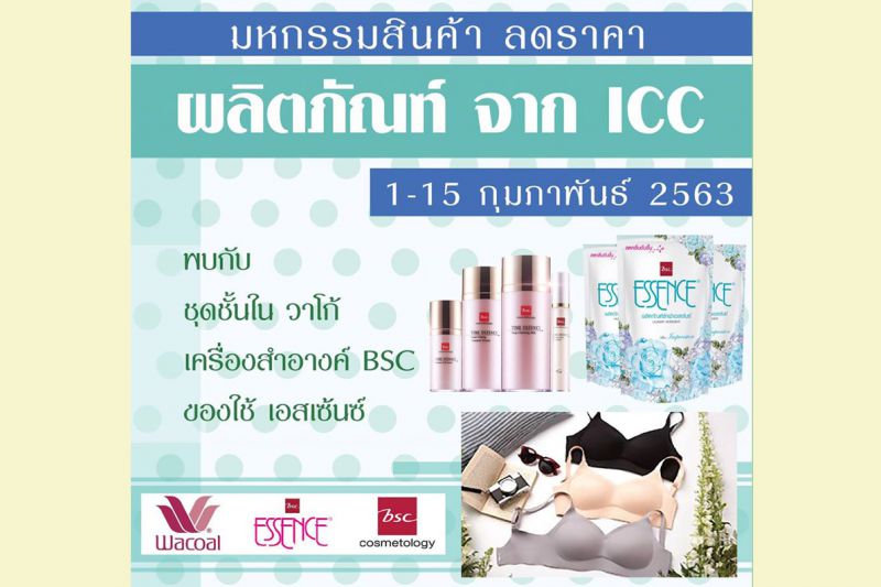 สาขาพาราไดซ์ วันที่ 1 - 15 ก.พ. 63 พบกัยงาน "มหกรรมสินค้า ลดราคา" เตรียมพบกับผลิตภัณฑ์ลดราคาพิเศษจาก ICC อาทิ ชุดชั้นใน Wacoal เครื่องสำอางค์ BSC CARA St.Andrews Essence งานจัด ณ บริเวณ ลานโปรโมชั่น แล้วจะเก็บภาพบรรยากาศมาฝากนะคะ
