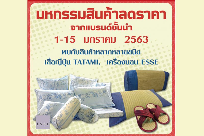 สาขาพาราไดซ์ เข้าปีใหม่แล้ว เรามาเริ่มด้วยงานดีๆ กันนะคะ กับงาน "มหกรรมสินค้าลดราคา" จากแบรนด์ชั้นนำ พบกับสินค้าหลากหลายชนิด อาทิ เสื่อญี่ปุ่น TATAMI , เครื่องนอน ESSE พบกันในวันที่ 1 - 15 มกราคม 2563 ณ ตลาดเสรีมาร์เก็ต พาราไดซ์ พาร์ค แล้วพบกันนะคะ